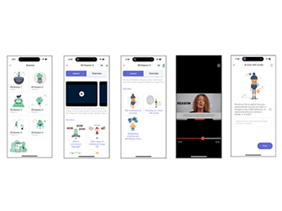 Unlike traditional therapy, the program is designed as a program-led intervention, meaning it provides structured therapeutic support without requiring real-time clinician involvement. This includes using prompts to encourage self-reflection, providing exercises that help users identify their values and behaviours and leveraging language that normalizes mixed feelings and uncertainty about change. Because the content is delivered through a mobile platform, the intervention can also be accessed privately and at a user’s own pace.